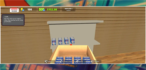 在我的卡牌商店游戏中,营业阶段玩家需要坐在收银台旁边,等待顾客选完产品并结账,当没有顾客的时候,你还需要去检查货架情况,比如卡牌被卖光了需要重新上架,地面上有垃圾要清理等,等待一天结束,你就可以看到自己当天的收益了。