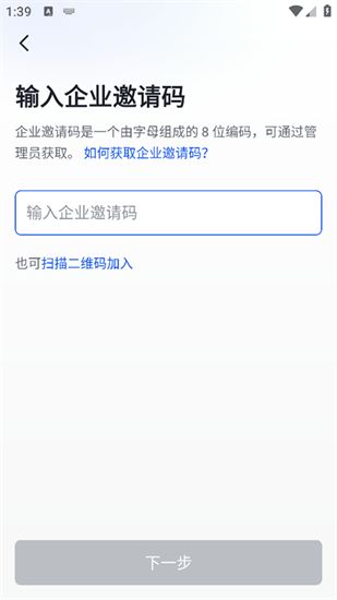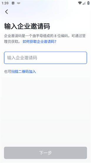 2、企业成员在下载并安装飞书客户端之后,需通过输入企业邀请码的方式加入对应的企业团队。