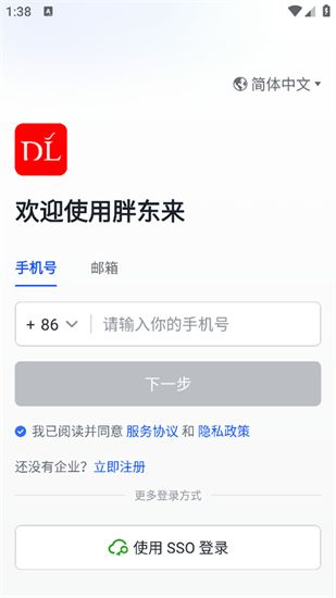2、然后输入企业域名完成SSO登录。