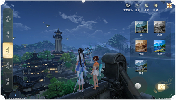 【合影】功能,可以选择角色动作与摄影角度,与你喜爱的经典仙剑角色们合影留恋,让李逍遥、赵灵儿与林月如在仙剑客栈重逢,共叙前缘。通过【天气】【滤镜】功能,可以选择多种滤镜和特效选项,调整游戏内的时间和天气状况,根据个人喜好改变场景氛围与照片风格。更有专业级别的镜头预设,系统自动运镜,一键选取更适合截图、录像的游戏场景。自由调整景深、视角与旋转角度,拍出时尚大片。