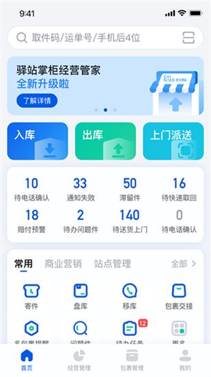 驿站掌柜手机版是菜鸟驿站官方推出的一款管理软件,专为菜鸟驿站站点设计。软件提供了可视化站点代收业务数据,站点管理者可以通过直观的图表和数据报表,清晰了解具体的业务情况,包括包裹数量、收件时间、派送状态等,从而更好地进行资源调配和业务规划。