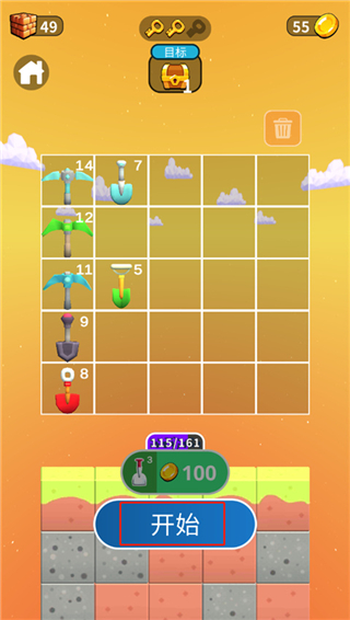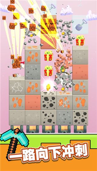 矿工模拟器游戏采用的是经典的闯关玩法,在最低处有着宝箱的存在,当你的铲子挖到宝箱之后就可以顺利通过关卡,非常的轻松,而且,游戏中还有着大量的任务,完成任务可以获得金币,礼盒等丰富奖励,感兴趣的小伙伴快来下载体验吧。