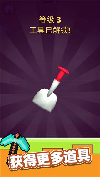 矿工模拟器手机版正版是一款轻松解压的休闲手游,游戏融合了合成玩法,玩家可以使用金币来购买铲子,并通过合成的方式来制造出更高级的铲子,铲子的等级越高,挖掘的速度和强度也会越高,能够帮你挖到更深处。而且场景中有着各种各样的岩石需要破坏,也需要使用高级铲子才可以完成工作,而且挖掘掉的土块和岩石越多,在结算的时候获得的奖励也就越多。同时,砖块还可以用来建造各种各样的建筑,完成一块区域的建筑之后,你将会拥有更大的空间来放置铲子。