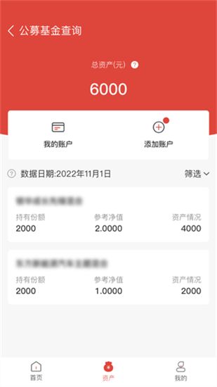 4、解决投资难题:很多购买基金的用户时间久了后,会忘记账户的账号密码,查询基金详细数据的步骤也非常的繁琐。这款软件解决了这一难题直接登录账号密码之后,在后台可以去查询自己所持有的基金详情,包括净值以及个人所持有的份额,具体的资产情况。v2.0.29版本