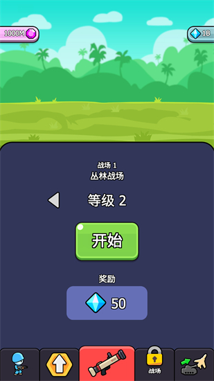 6、玩家等级升到2级,点击开始继续闯关。