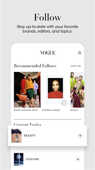 软件还提供了便捷的图片保存功能,支持轻松分类管理自己的时尚灵感图片素材库,随时回顾和参考。此外,用户还能在这里深入了解时尚界的最新动态和趋势,获取到权威的时尚见解,让您在时尚领域更加专业和自信。如果您是时尚行业的从业者或者就是一个普通爱好者,这款vogue runway安卓软件不容错过,喜欢就来下载吧!