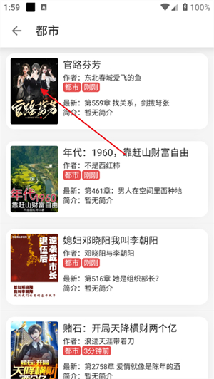 3、然后就可以在对应小说分类中,查看该类型的小说列表了,找到一本感兴趣的点击进入。