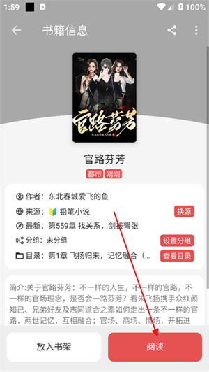 4、在书籍信息界面,点击右下角的“阅读”按钮,就可以开始沉浸式阅读啦!