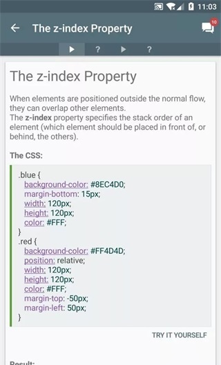 3、然后学习 CSS 的“z-index”属性为例。这里介绍了“z-index”的概念,我们可以知道“z-index”是定义元素的先后顺序的。
