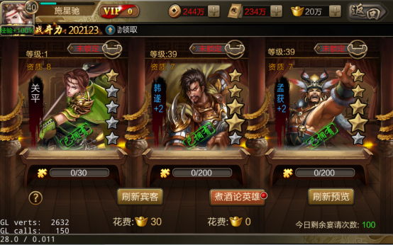 客栈宴请:通过城池中的客栈按钮,可进入客栈。在客栈中可宴请指定3名武将,宴请武将后有一定几率获得大量将魂。