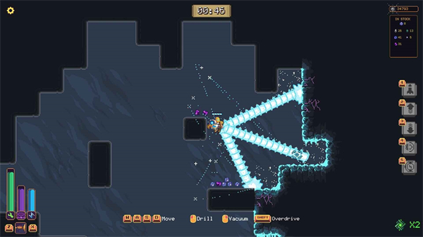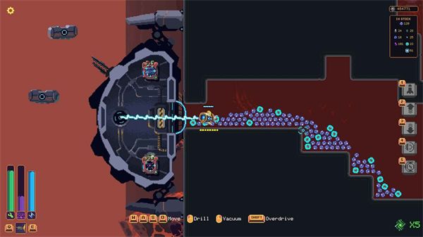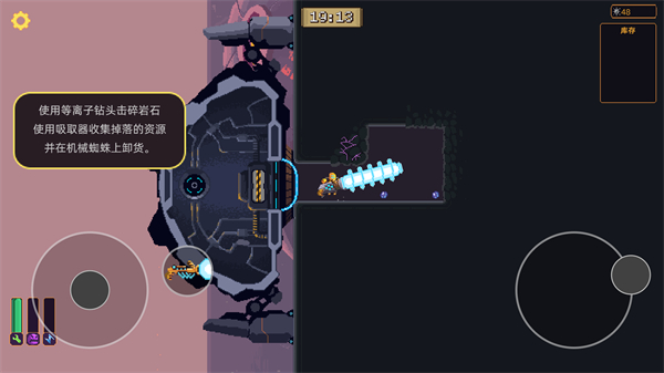 2、采掘:在墙的各处深入挖掘。搜寻用于升级的资源和技术,探索矿洞中的全新生物群系——不过别忘了怪物来袭时要及时返回你的机械蜘蛛。