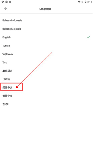2、然后选择“简体中文”即可,如图所示。