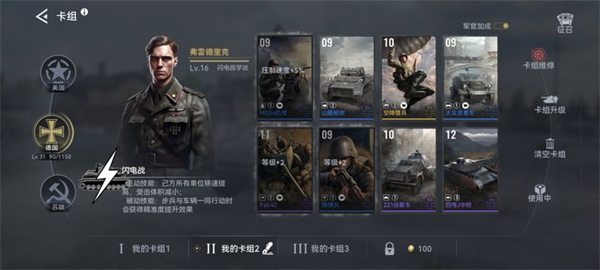 1、美苏德三个阵营的强度我大概分一下:苏>美>德(1V1中的强度,但即使是2V2也差不多)所以我建议萌新优先玩苏美,玩之前先要抽卡,拿到那些核心卡,这样上手很容易,核心卡会在下面细说。