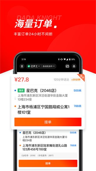3、手机接单:送外卖,送水果,反正各种送。4、按单结算:每单收入稳定,还有各种奖励补贴小费。