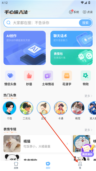 在这里用户可以在这里设置输入法的主题皮肤,而且设置的方式也非常的简单,只需要上传对应的图片,软件就会帮助用户完成剩下的内容。另外,手心输入法app还有着大量的表情包可以使用,还可以通过文字来寻找对应的表情包,非常的有趣。