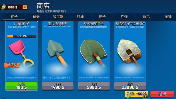 5、此外,你还可以用获得的金币在掘地求财中文版商店解锁获得新的铲子,或者对原铲子进行升级。