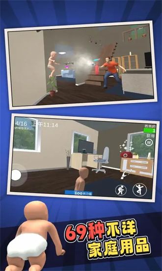 2、谁是你爸爸双人联机版正版中有疯狂的物理效果和超过69个可能具有不祥预兆的家庭用品。