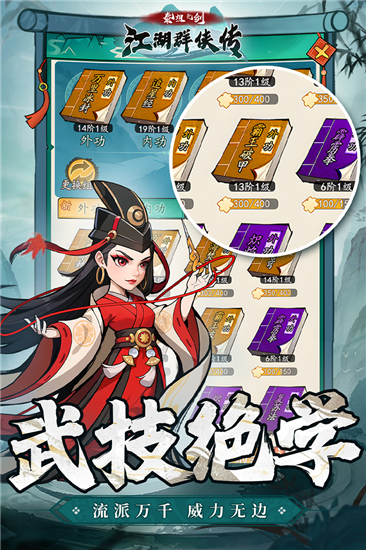 泰坦之剑手游是一款融合了挂机、冒险、社交等多种趣味玩法元素的RPG冒险游戏。该游戏操作简单,玩法丰富,有着超大的武侠世界观,在这个浩瀚的武侠大世界中,玩家将招募集结属于自己的侠客队伍,进行探索冒险,或穿梭于繁华市井,或遨游于幽静山谷,尽情探索感受悠闲的江湖冒险乐趣。进入游戏,玩家无需繁琐操作,角色即可自动历练,收获各种升级经验和资源,让你轻松升级。