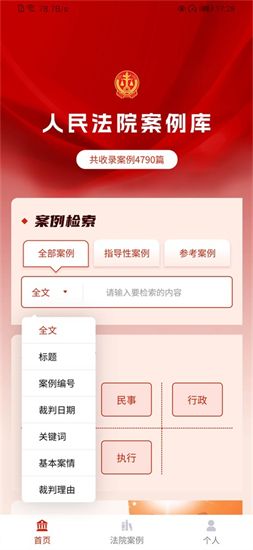 4、强化司法决策支持:为司法工作者在审理案件时提供权威、精准的辅助资料,确保判决标准的一致性。1、简单检索:在人民法院案例库app的“全部”-“全文”中输入您想检索的关键词,可以在指导性案例和参考案例的标题和全文中进行检索。