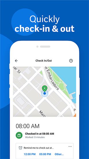 6、迅速进行行政部门每日任务,查看或申请办理短期内请假、纪录花费、根据签入及签出去纪录运行时间或者核查您的工资条,不会影响您的常规工作。