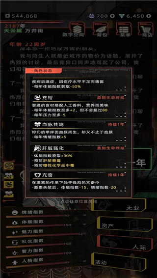 4、选择会影响玩家在游戏中的人物属性和发展方向,使每一段人生都独一无二