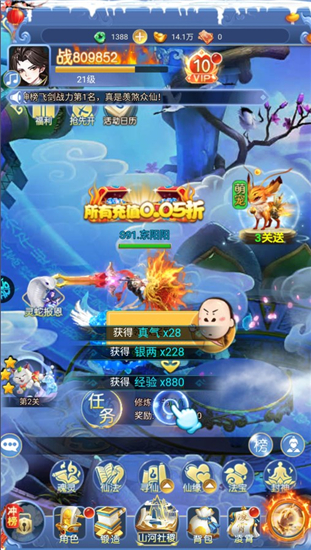 丰富的闯关任务玩法,玩家每完成一个任务即可获得丰富奖励,提升角色实力,通过不断升级,我们还可解锁更多法宝、仙缘以及山河社稷等其他更多活动玩法,大大丰富游戏可玩性。点开首页活动日历,每天不同时间段还有天道答题、夫妻竞技、万妖禁地、古神遗迹等更多趣味活动等你来参与,对此感兴趣的小伙伴们快来下载请问你为啥这么厉害手游体验吧!