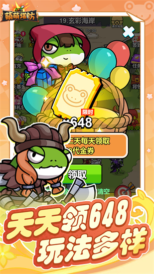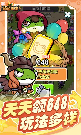 萌萌塔防0.1折版是一款玩法多样的肉鸽塔防手游,游戏中的所有角色都采用了有趣的青蛙形象,玩家可以对英雄们自由搭配组合,然后与魔怪们进行挑战。萌萌塔防最新版本为大家带来了超值充值优惠福利,承诺永远0.1折扣可以使用。