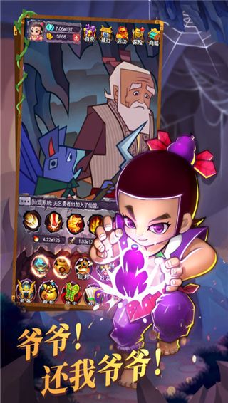 新葫芦娃手游是一款根据经典同名动漫改编而来的休闲放置类手游,玩家将会与葫芦兄弟一起斩妖除魔,在前进的过程中会出现大量的妖怪,如独眼蛤蟆,蜘蛛怪,黄蜂,壁虎等,想必大家应该很熟悉,这些都是经常出现的妖怪,你需要控制葫芦娃将妖怪消灭才可以继续前进,而且击杀妖怪还可以获得一定的奖励,如铜币,道具等,你可以利用这些奖励来解锁技能,升级法宝等,从而提升葫芦娃们的实力,不过并不是所有的妖怪都会被消灭,比如我们熟悉的穿山甲,它会加入到我们的阵营,并与我们一起进行战斗。