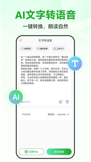 2、AI文字转语音文本一键智能转语音,多语言同步翻译朗读。支持粤语、闽南语、自定义克隆音色等多种声音转换,真实发音,流畅自然!适用于视频制作、小说配音、文本朗读等多元化场景。