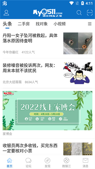 4、软件汇聚镇江本地全体网友,积极发贴结识更多朋友。1、打开从本站下载的My0511手机版,进入首页可以看到每日新闻推送。