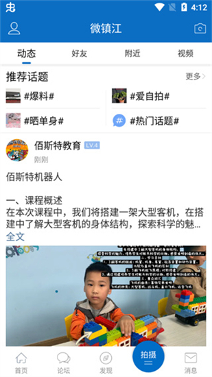 4、在“微镇江”中,你也能分享自己的趣事,和同城的好友一起分享快乐。
