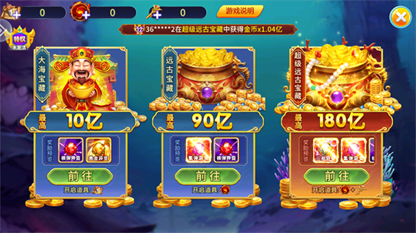 小玛丽捕鱼安卓版是一款3D街机捕鱼手游,支持多名玩家联机合作打鱼。游戏内置聊天系统,让玩家之间可以通过语音来快速交流策略,还有丰富的社交玩法如战队、公会、团竞等玩家来体验。小玛丽捕鱼官方正版精彩活动轮番上线,更有超多关卡首领如穷奇、龙神、人鱼、龙龟等你挑战,各种鱼类爆率都超高,喜欢的朋友不要犹豫,赶快来下载捕鱼吧!