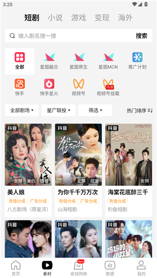 好省短剧官方正版app还加入了各种各样的变现方式,比如软件推广,用户在进行创作之后可以在短视频中进行推广,每当有用户下载软件并进行注册,那么你都可以得到一定的佣金,而且为了方便用户查看自己的收益,在打造的数据版块,这里从各个方面给出了相关的数据,让你可以更好的了解相关情况。