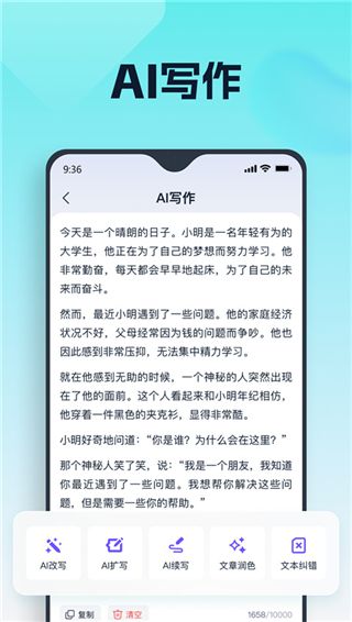 聪明灵犀手机版是一款功能强大的AI智能编辑软件,内置了强大的AI分析技术,为用户带来了众多功能,如写作,改写,扩写,续写,问答,一键提取文案,人像抠图等,能够满足用户很多需求。并且,软件还具备着很大的知识库,覆盖了各个领域,如科学,历史,技术,娱乐,文化等,能够轻松为用户解答各种问题,而且AI是可以不断的进行学习的,通过不断的进行对话,AI会自动进行学习,回复用户的问题也会越来越准确。