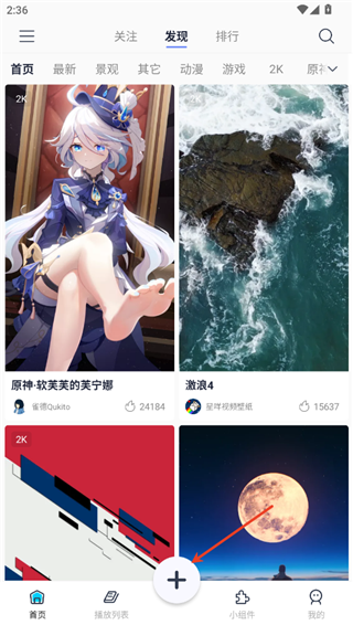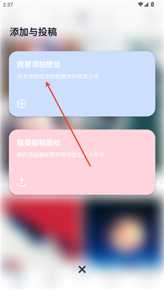星咩视频壁纸app官方版还为用户带来了添加与投稿功能,添加功能可以理解为自定义壁纸,可以将本地壁纸添加到播放列表使用,投稿则是将自己的作品投稿了平台上让所有用户使用,你可以根据自己的想法进行选择。