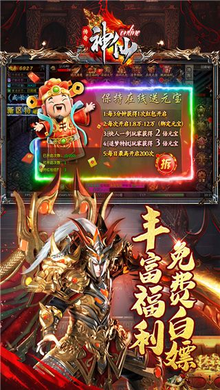 3、神仙online(高爆无限刀)连续登录免费领取冠名大礼包,全屏吸怪,追梦特权,专属地图,免费领取。