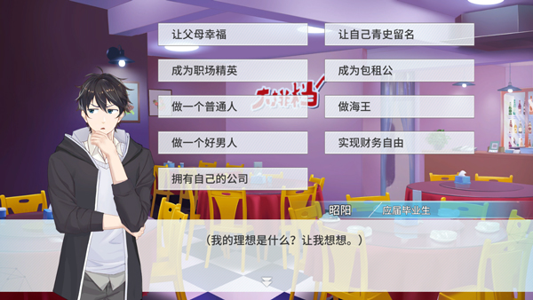 3、接着选择自己的理想与奋斗的目标,如下图所示。