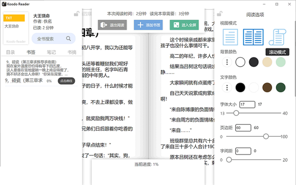 KoodoReader安卓版是一款好用的免费电子阅读器,又叫做可道阅读。软件的界面经过精心设置,采用了极简的UI设计,旨在为读者们带来舒适的读书体验。同时,它还提供了批量导入、听书、翻译、词典、AI总结等丰富的功能,以及全面的阅读设置,让大家能够沉浸式享受个性化的读书时光。