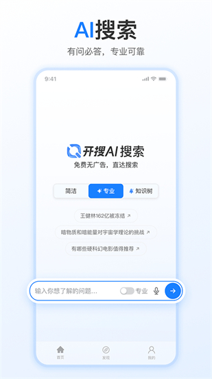 开搜AI搜索引擎是由上海词遇网络科技有限公司推出的一款专业搜索软件,使用智能先进的AI功能帮助用户解决工作中的各种难题。同时,它还能辅助大家精准筛选所需资料,国内外全网论文一键即可获取,或者直接帮你完成搜索写作全过程,让你写作不卡壳。开搜AI助手app官方版免费无广告,搜索直达,快速高效,感兴趣的朋友不妨前来本站下载试试吧!