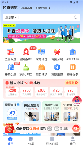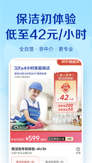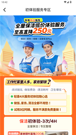 轻喜到家app接单平台是一款非常专业的家政服务平台,基于互联网技术,为家庭带来了多样化的生活服务,如全屋保洁,星级保姆,家电清洗,家庭纹绣,家务小时工,养老保姆,上门做饭,鞋包洗护等,涉及了生活的方方面面,如果遇到了什么不想做的家务活动,可以直接在这里下单,之后就会有专业的人员来帮助用户完成任务,而且新用户下单可以领取大量的优惠券,还有初体验服务专区,价格优惠力度极大,可以结合优惠券使用,让你可以用极低的价格来体验各种服务。