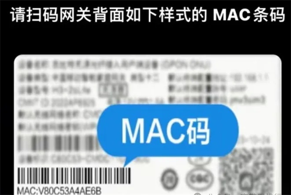 3.设备连接与绑定:对于智能摄像头等设备,可根据APP内的指引进行设备绑定。绑定智能网关(光猫),可直接选择“扫码绑定”,扫描光猫背面的MAC条形码即可。