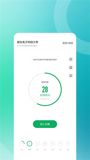 2、跑步记录年度统计直观展示运动次数和公里、跑步标签及跑步模式,乐跑榜单前十名更有学校准备的奖励基金。