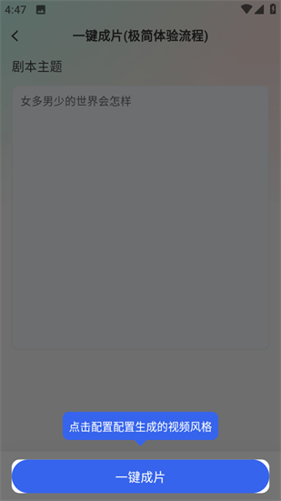 4、一键成片使用软件也可以进行视频创作,帮助用户轻松创作各种精彩的短视频,创作更轻松;