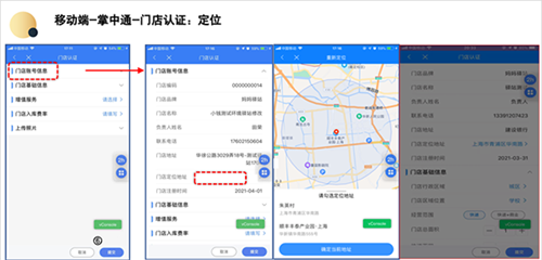 认定内容-门店基本信息自动带出-门店定位地址(支持当前位置5km内移动)