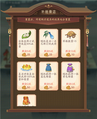 沿途还会触发多种事件,有时是突如其来的战斗,有时是意想不到的补给或资源,如何判断取舍直接决定最终能否顺利抵达终点。与此同时,补给商店提供了锦囊等增益道具,玩家可以在保证推进的前提下灵活使用,以提升整体战力。