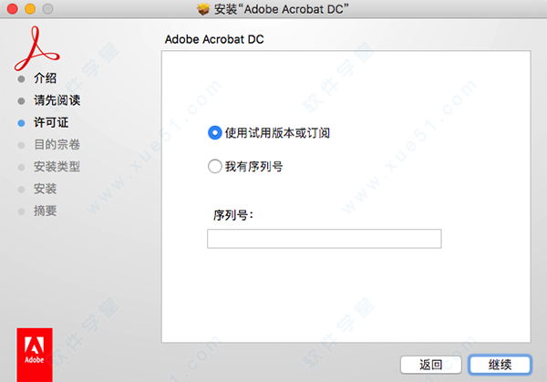 2、根据提示安装,到了如下安装界面,选择“使用试用版本或订阅”;
