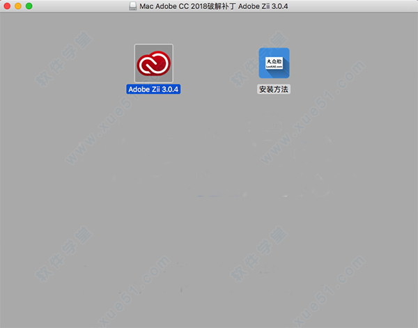 4、安装完成后,我们现在安装完升级包之后,我们打开“Adobe Zii_3.0.4.dmg”注册机文件,双击“Adobe Zii 3.0.4”;