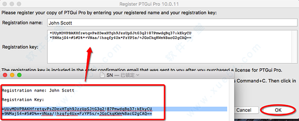 3、我们打开软件包中的“SN”文本,将其中的注册信息复制到其中,点击“OK”如图所示;