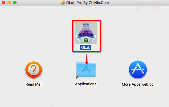 1、打开dmg镜像文件,将软件“qlab”拖入应用程序中进行安装;