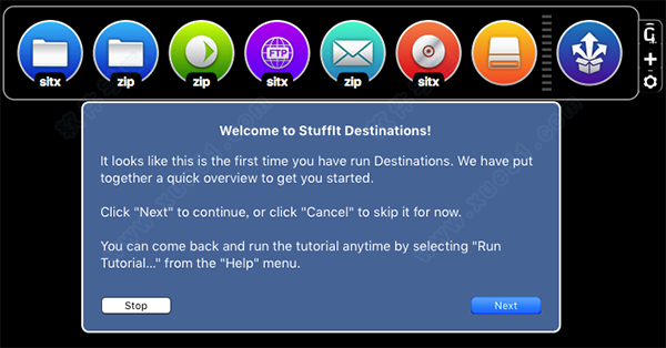 ?StuffIt地以工作不发送的文件。我们很少只想压缩文件,我们几乎总是希望他们去某个地方,或是某人。东西地让你拖放文件到任何目的地的瓷砖,它包的文件并将它们传递给预先设定的目的地。轻松添加自定义瓷砖,你的东西地工具栏。
